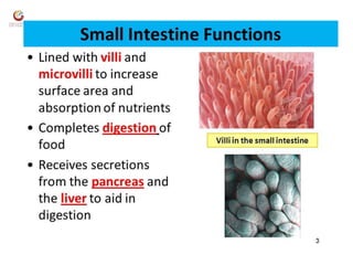 3. The presentations include details on the introduction and functions of the digestive system, functional anatomy outlining the primary and accessory digestive organs, and the functions of the mouth and properties/composition of saliva.