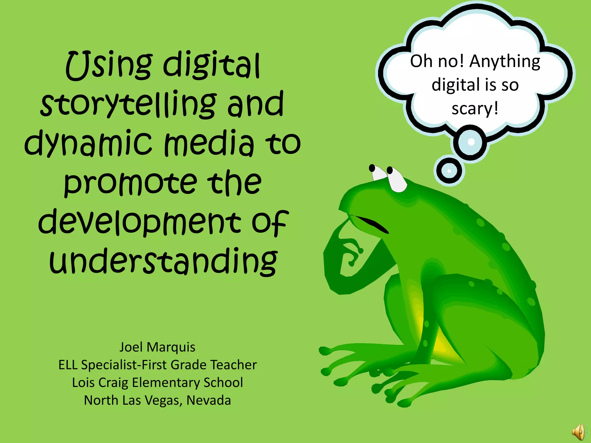 This document discusses how digital storytelling and dynamic media can be used to promote understanding in the classroom. It begins by outlining four essential questions about how these tools can be integrated and implemented successfully, especially in early elementary grades. Examples are provided of how Lois Craig Elementary currently uses technology. The document then discusses concepts like digital story rubrics, Nevada's first grade social studies standards, and buzz words related to digital storytelling and dynamic media. Tips and resources are provided for educators looking to get started with these tools in their own classrooms.