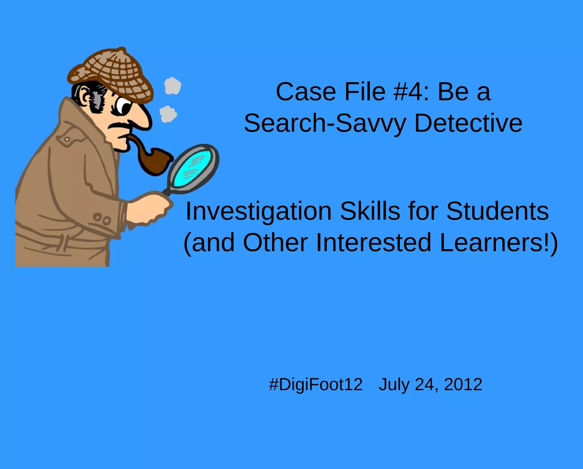 This document provides tips and strategies for effectively researching information online. It discusses the importance of using reliable sources like purchased databases, library books, and pre-selected teacher-approved sites. It outlines steps to take when searching like using good keywords and synonyms. Important factors to examine in search results are the URL, author, date, and quality of information. Domain extensions can provide clues to the type of site. The document recommends using the triangle method of research by cross-checking information across multiple sources. Key strategies discussed are the REAL acronym for critical web searching which stands for Read, Examine, Ask, and Look. Other tips include searching within a specific site or domain, comparing different search engines, and evaluating website pairs