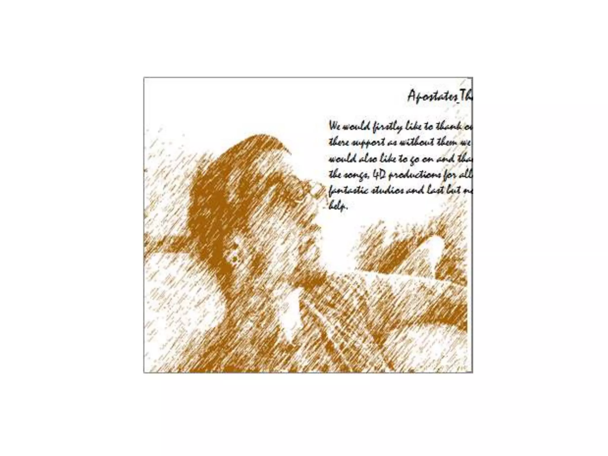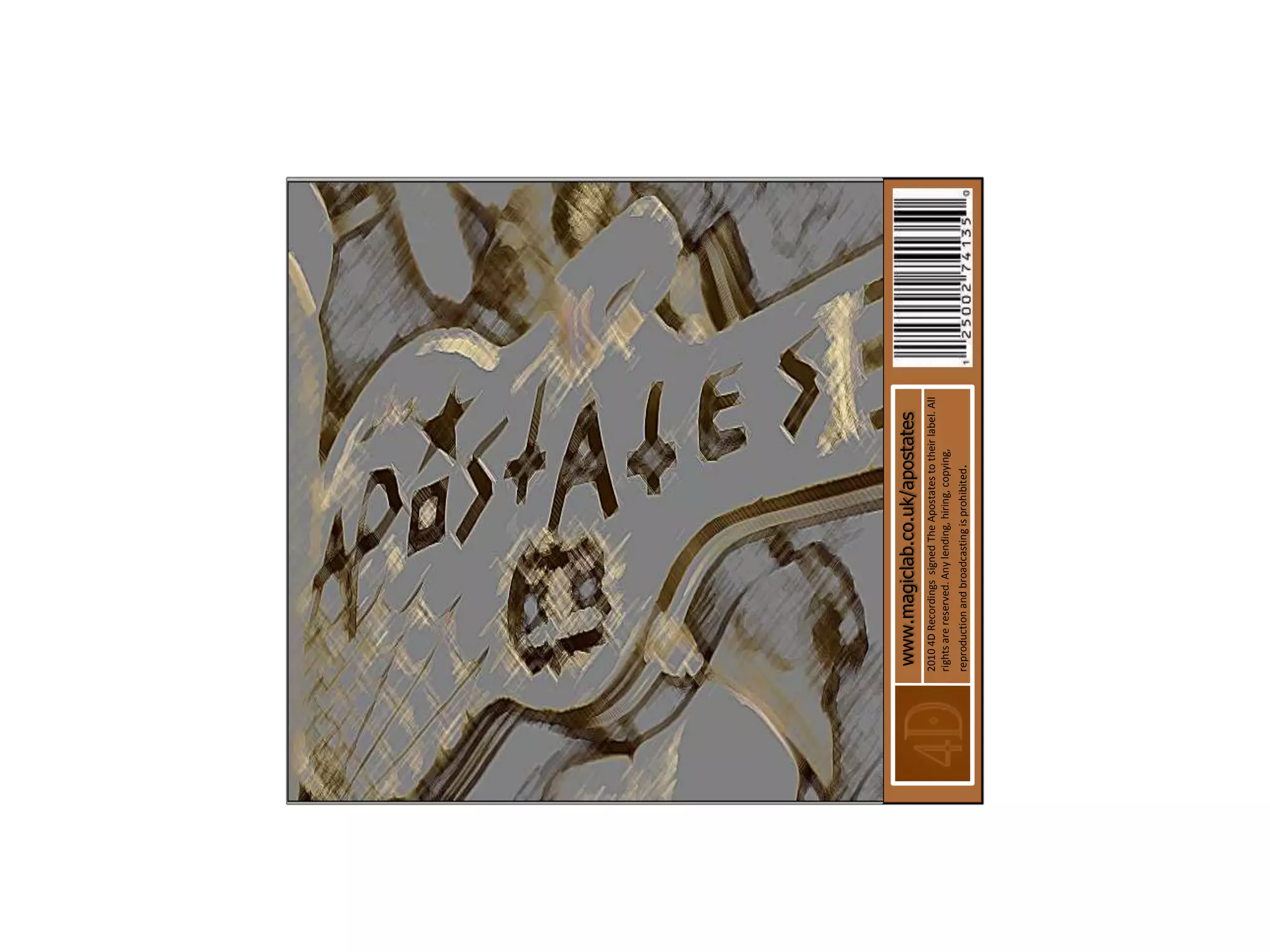 The Apostates signed with 4D Recordings in 2010, and all rights to their music are reserved by the label, prohibiting lending, copying, reproduction or broadcasting. Contact information is provided for The Apostates, including their address in London and website for more information.
