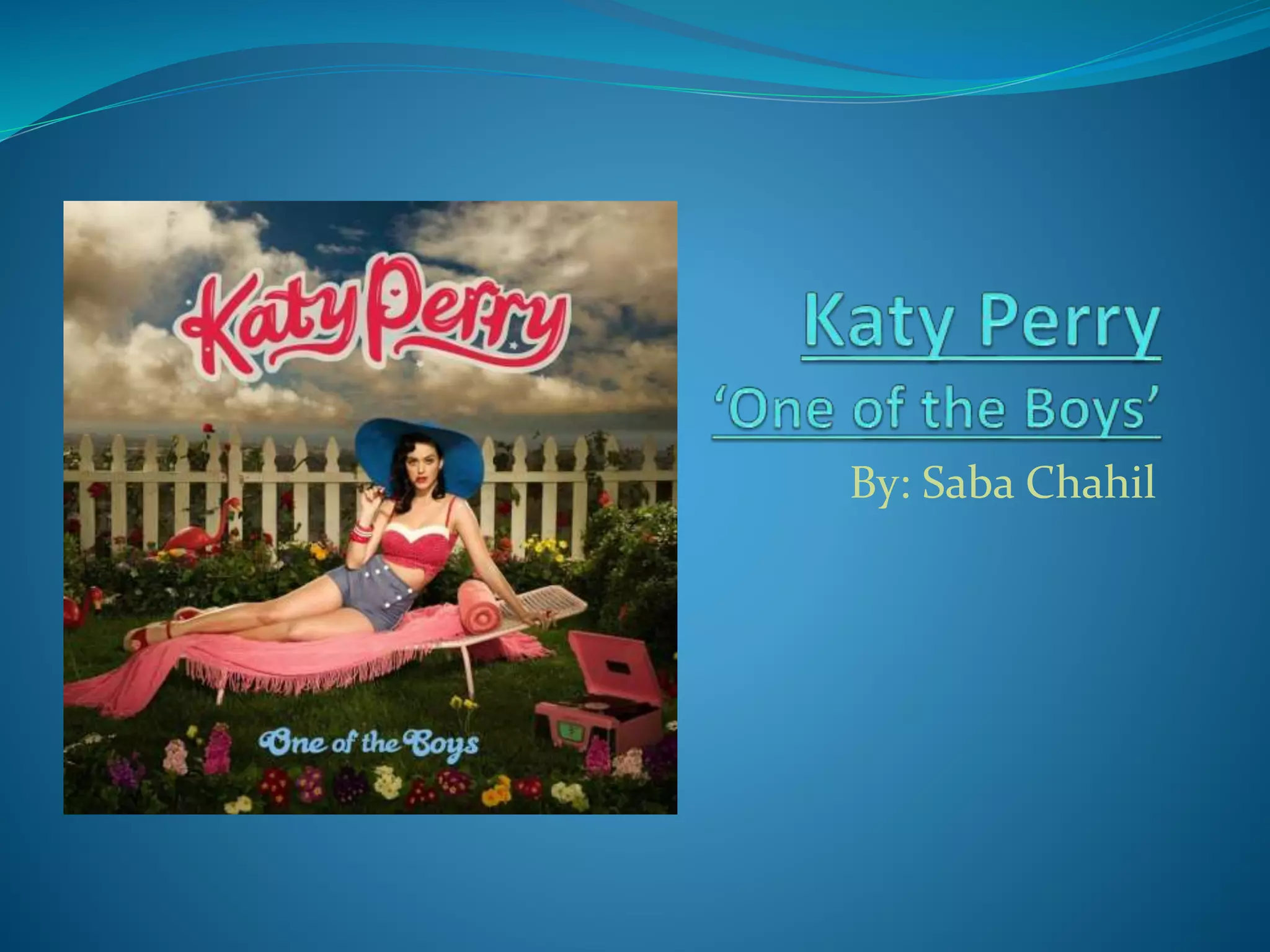 Katy Perry's 2008 album "One of the Boys" has a feminine, girlish theme carried throughout the album packaging. The front cover features a mid-shot of Perry lying on a beach wearing short clothes and biting her shades, giving it a sensual feel. The inside continues this theme with a close-up of Perry in a light makeup look reflecting 1990s girl style. Imagery of fruits and flowers on the inlay and back cover reinforce the summery, girlish theme. While the CD itself only lists the artist and album name in the same girly font, the packaging overall presents a cohesive feminine visual theme for the album.