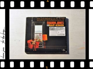 The document summarizes the design of a CD digipak for the band Sharon Jones and the Dap-Kings. The front cover features a photo of the band's singer with an earthy color scheme representing the funk and soul genre of the 1970s. Opening the digipak reveals photos and information about the band members. The CD inside maintains the color and font styles. Throughout, the digipak maintains a simple yet unified design that clearly presents the band and genre of music.