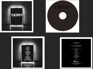 The 1975's digipak album features a simplistic black and white color scheme that gives it a mysterious, gloomy feel. The back cover lyrics are displayed on a board with light behind it, while the CD itself is completely black with only a small white circle and darker black font. Extra details like a hanging wire further enhance the authentic, indie pop genre-inspired aesthetic.