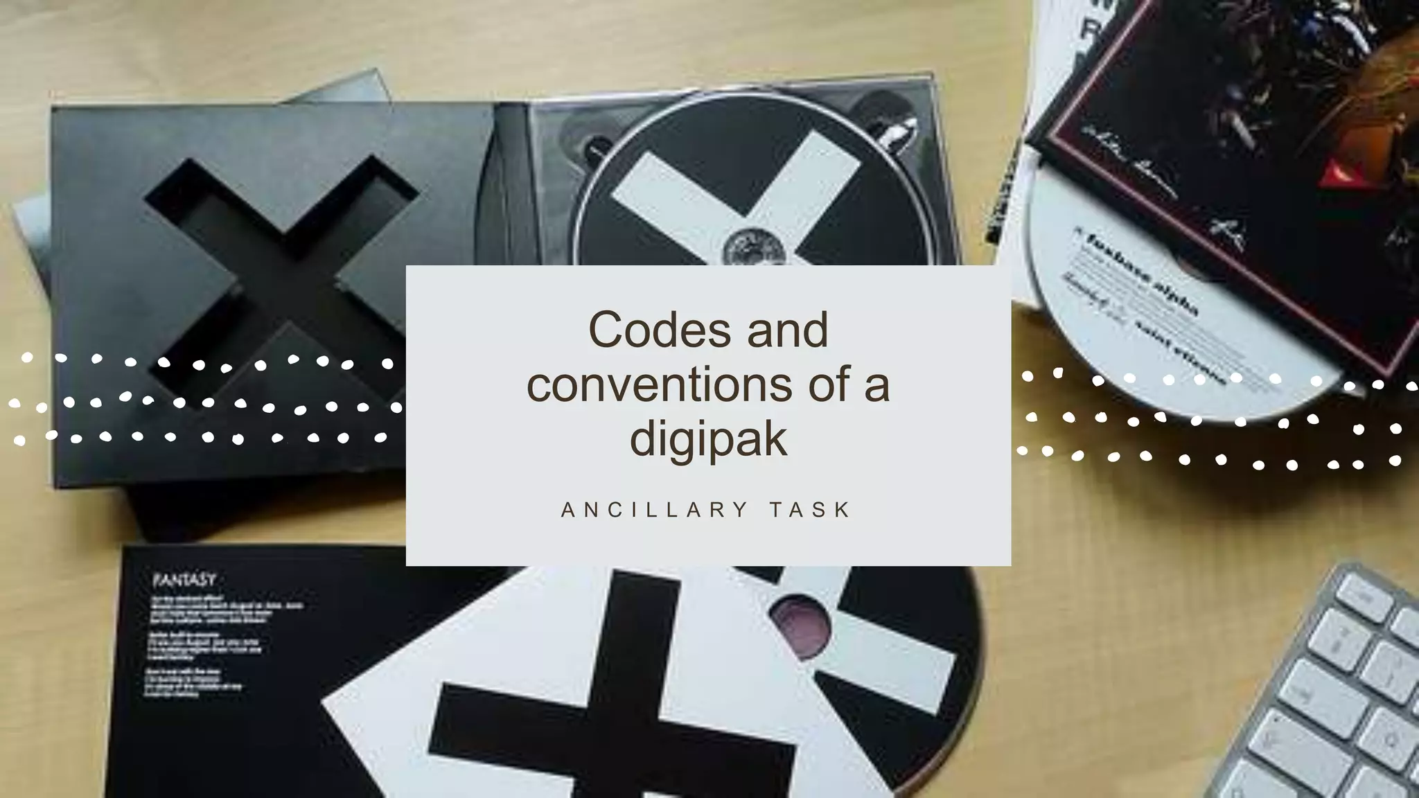 A digipak is a standardized packaging format used to house, protect, and promote CDs and DVDs. It typically contains several printed panels that can include photos, illustrations, text, and information about the music or film. Digipaks serve to both physically protect the disc inside and help market the product through visual design that conveys the mood or genre. Key conventions include listing the artist, album/film title, and label logo on the front, back, spine, and sometimes inner panels along with additional details like song lists, photos, and credits.