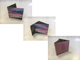 This flat plan document outlines the design for a digipak, including using stock sunset images that relate to the music video, a panoramic photo of the woods from the music video across three inside panels, and a sans serif font for the group name to represent their indie pop music in a non-generic way.