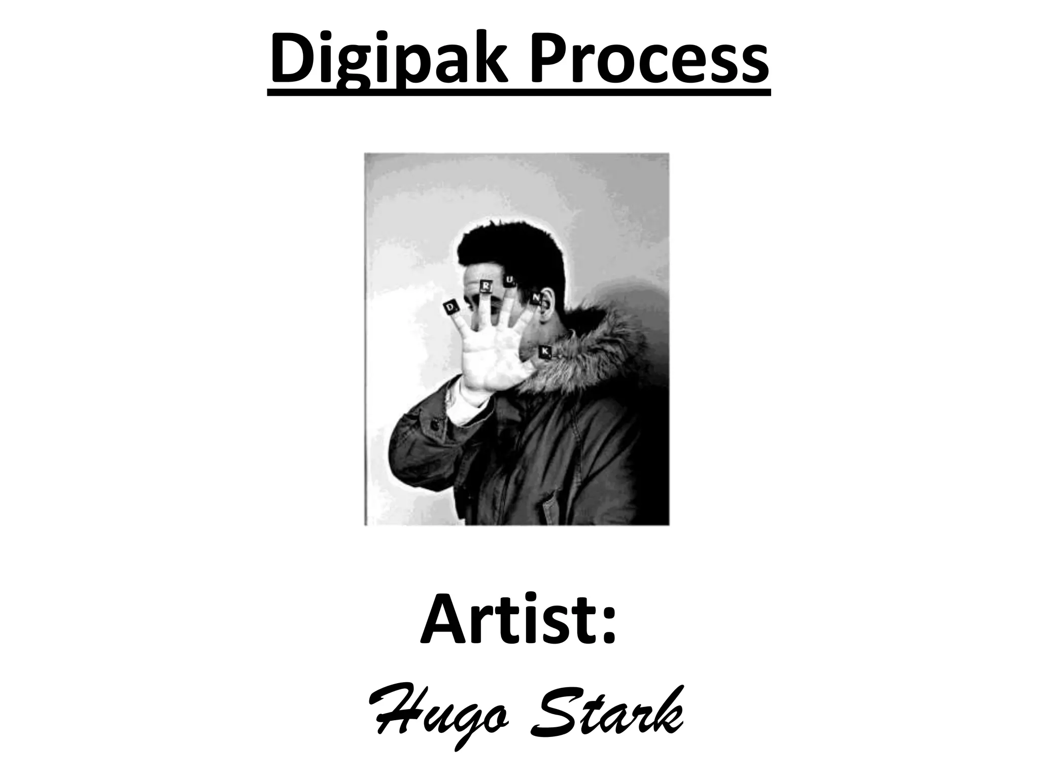 This document provides details about designing a digipak for artist Hugo Stark's debut album. It discusses dimensions for a 6-sided digipak and compares Stark's style to other artists. Photos taken for the front and inside covers are analyzed. Final decisions are made to use black and white, manipulated photos for the front, inside, and back covers arranged in a collage-like style. An album tracklist is also provided. The digipak template includes the artist name and brief description of the album themes.