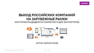 Документ представляет собой обзор бизнес-завтрака, организованного Google и e-promo, посвященного инструментам цифрового маркетинга для российских компаний, стремящихся выйти на зарубежные рынки. Приведены методы анализа рынка, включая оценку спроса, структуру рынков, брендовые предпочтения, и конкурентное окружение. Основное внимание уделяется важности цифровых инструментов для достижения успешных экспортных стратегий.