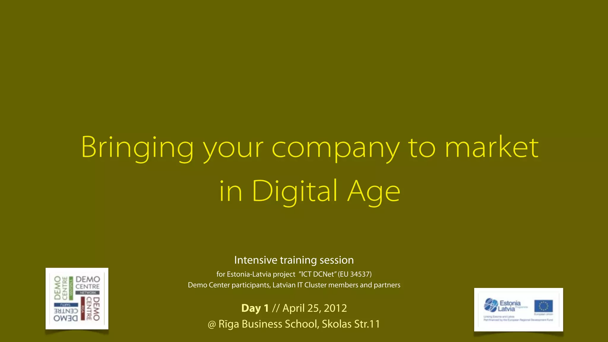 The document outlines a training session on bringing companies to market in the digital age. It discusses how digital technologies have fundamentally changed communication, which is now multi-directional rather than one-directional. To succeed in the digital world, companies must create extraordinary experiences, tell compelling stories, and focus on creating value for customers by making their lives easier. When communicating digitally, companies should focus on building an ecosystem rather than just a website, prioritize simplicity, use aesthetics and design, engage multiple senses with different formats, utilize data visualization, and ensure interactivity through simulations. Storytelling, not just information, should be the focus. The training will continue after lunch with case studies and a discussion on being a great client.