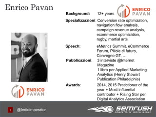 Il documento presenta un approccio al marketing basato sui dati, evidenziando l'importanza di avere accesso a informazioni complete e di impostare strumenti adeguati per monitorare i progressi verso obiettivi specifici. Viene discusso il concetto di KPI, con un focus su come definire obiettivi SMART e misurare le performance attraverso vari indicatori. Viene infine delineato un piano di misurazione per ottimizzare le vendite e l'engagement degli utenti.