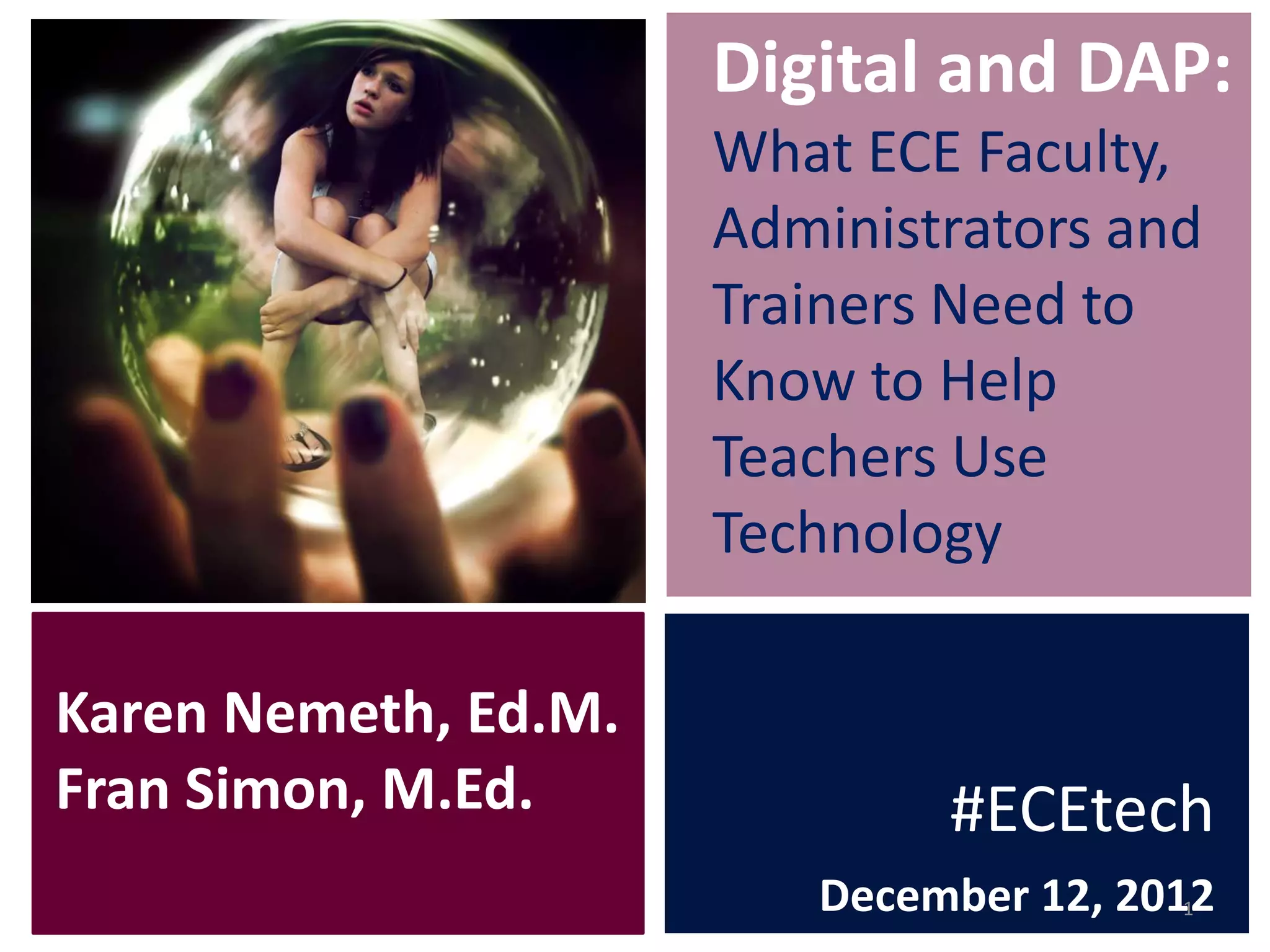 This document provides an overview and guidance for faculty, administrators, and trainers on helping early childhood educators use technology appropriately. It discusses the NAEYC position statement on technology use being developmentally appropriate. It also covers practical considerations for selecting tools, evaluating technology use, and making informed decisions. The implications section suggests providing teachers hands-on experiences with technology and ongoing support to effectively integrate it in their teaching.
