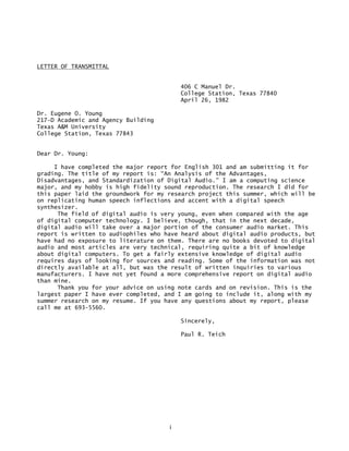 The document provides an overview of the digital audio process and discusses some key issues in the field. It describes the process of digital audio recording and playback in detail. The main steps are filtering the analog input, analog-to-digital conversion via sampling and quantization, encoding and storage; and pickup from storage, decoding, digital-to-analog conversion, and output filtering. The document outlines two main disadvantages of digital audio: aliasing distortion caused by improperly filtering high frequencies, and quantization noise from rounding errors in analog-to-digital conversion. It also discusses challenges around standardizing formats and storage/playback systems in the emerging consumer digital audio market.