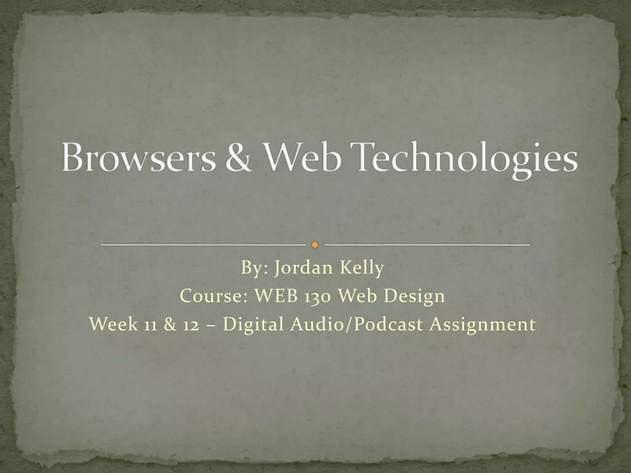 This document discusses Firefox's latest release of version 11 which includes new features like Page Inspector 3D View nicknamed "Tilt" that uses WebGL-based visualization. It also mentions that Firefox aims to become the world's number-one browser someday and notes challenges for web designers and developers in the future from StatCounter's CEO. The document focuses on digital audio/podcast assignments for a web design course.