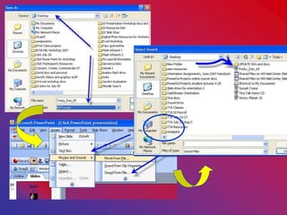 The document provides an agenda and overview for a workshop on using digital cameras to enhance instruction. The workshop covers parts of digital cameras, taking effective photos, transferring photos to computers, basic photo editing, and creating a photo collage project in Microsoft Word. It also discusses using photos in PowerPoint, movie maker, and other digital presentation tools, and includes assignments for attendees to create student-centered photo lessons and multimedia projects using photos.