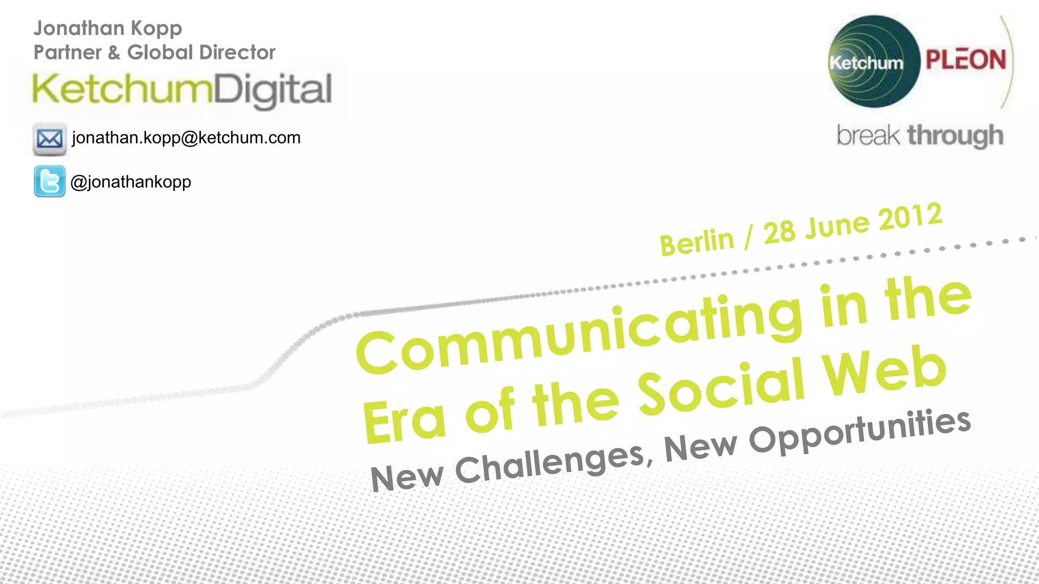 This document discusses the rise of social media and its impact on marketing, communications, and business. Some key points:
