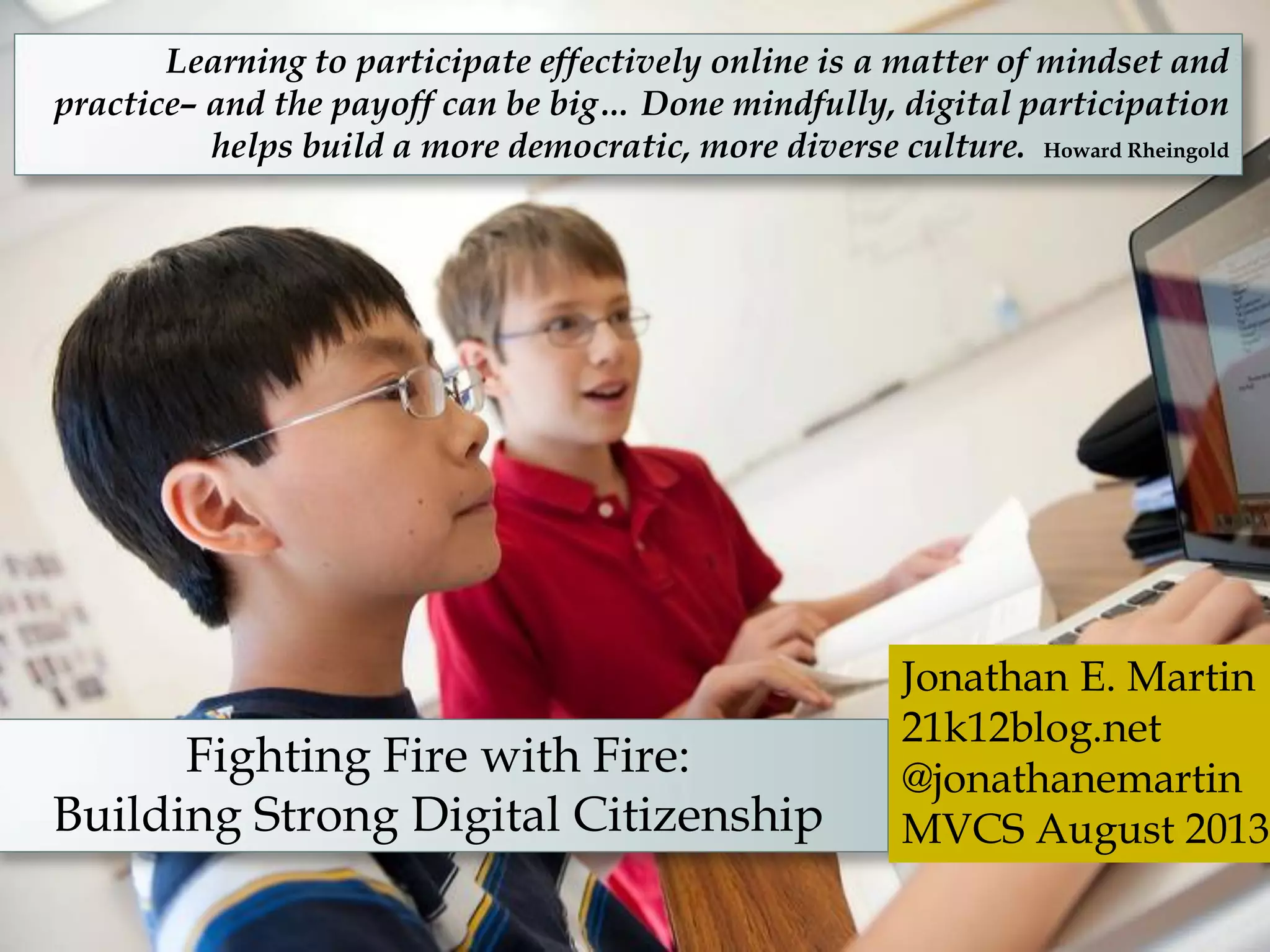 The document discusses digital citizenship and how it can be developed through practice. It emphasizes that digital citizenship involves skills like attention, participation, collaboration, communication, and critical thinking. It suggests developing these skills through modeling positive citizenship, establishing norms, and integrating focus skills and "crap detection" into education. The overall message is that digital natives will respond better to positive leadership that advocates for good digital citizenship through practice rather than criticism.