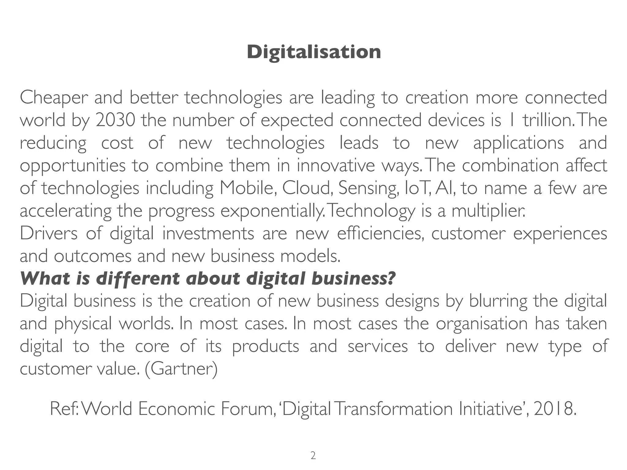 The document discusses the impact of digital transformation driven by advancements in technology, emphasizing the need for organizations to adapt by digitally remastering their products and services. It outlines the importance of agility, customer experience, and data-driven decision-making, while highlighting key enablers for successful transformations, such as leadership, ecosystem thinking, and technology infrastructure readiness. Additionally, it explores the fluidity of industry boundaries and the emergence of new business models as a result of digital integration.