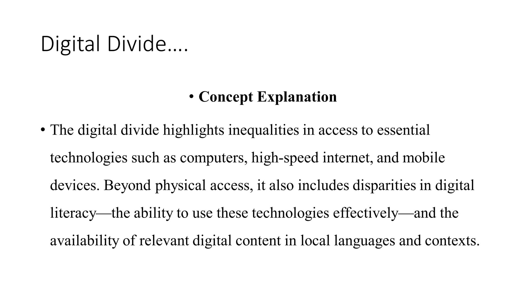 -Even with access to technology, individuals may lack the skills or knowledge to effectively use digital tools and