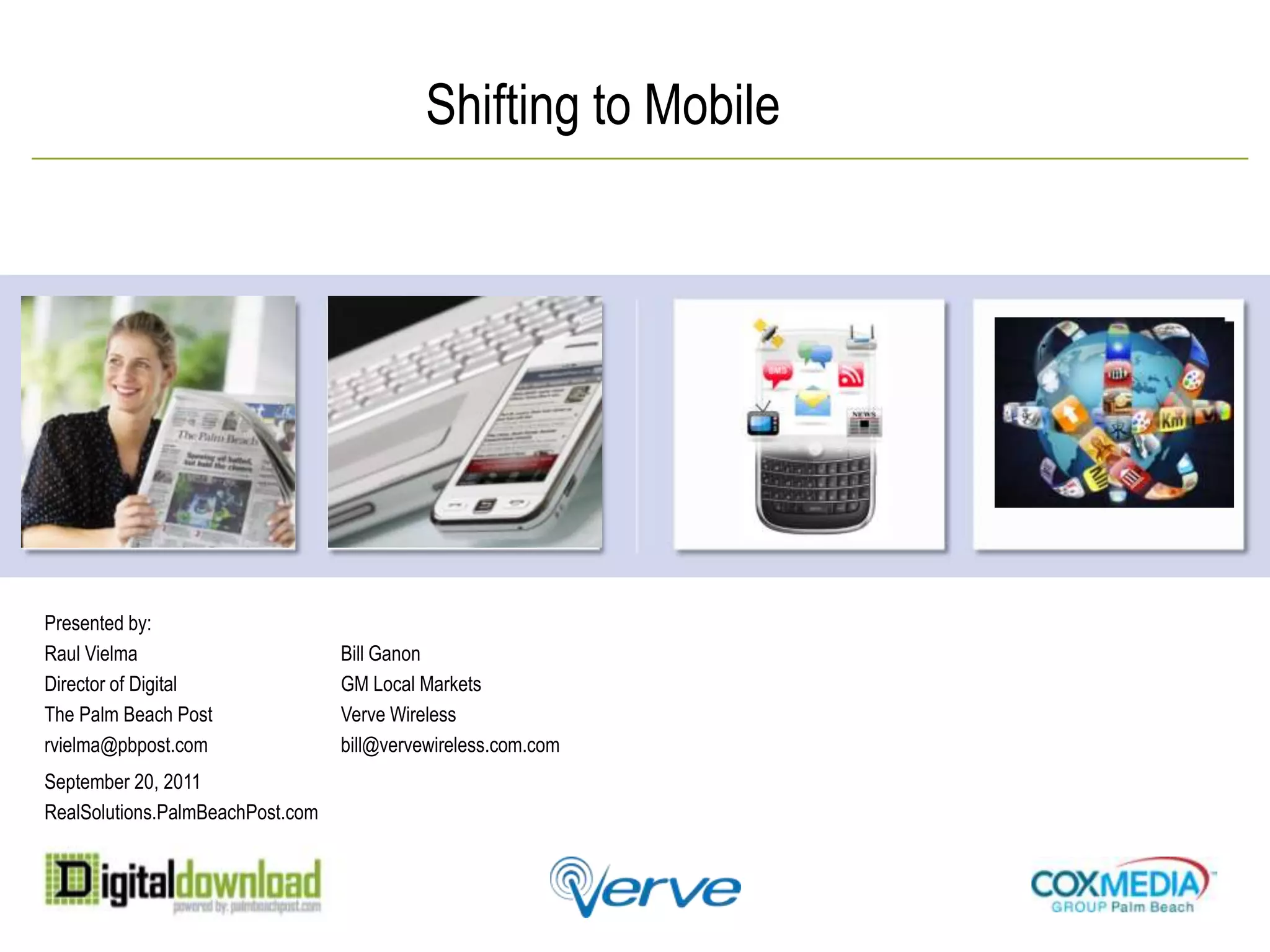 This document discusses shifting to mobile strategies for media companies. It outlines that mobile device usage is rapidly growing and becoming the primary way people access media. The document then provides an overview of the mobile advertising landscape and opportunities for local publishers to reach audiences on mobile. It discusses how mobile offers new audiences and engagement through apps and mobile-optimized sites. The document concludes by discussing the mobile value proposition for advertisers and provides best practices for mobile advertising.