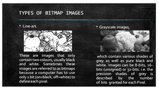 File Formats: Common raster image formats include JPEG, PNG, GIF, and BMP.