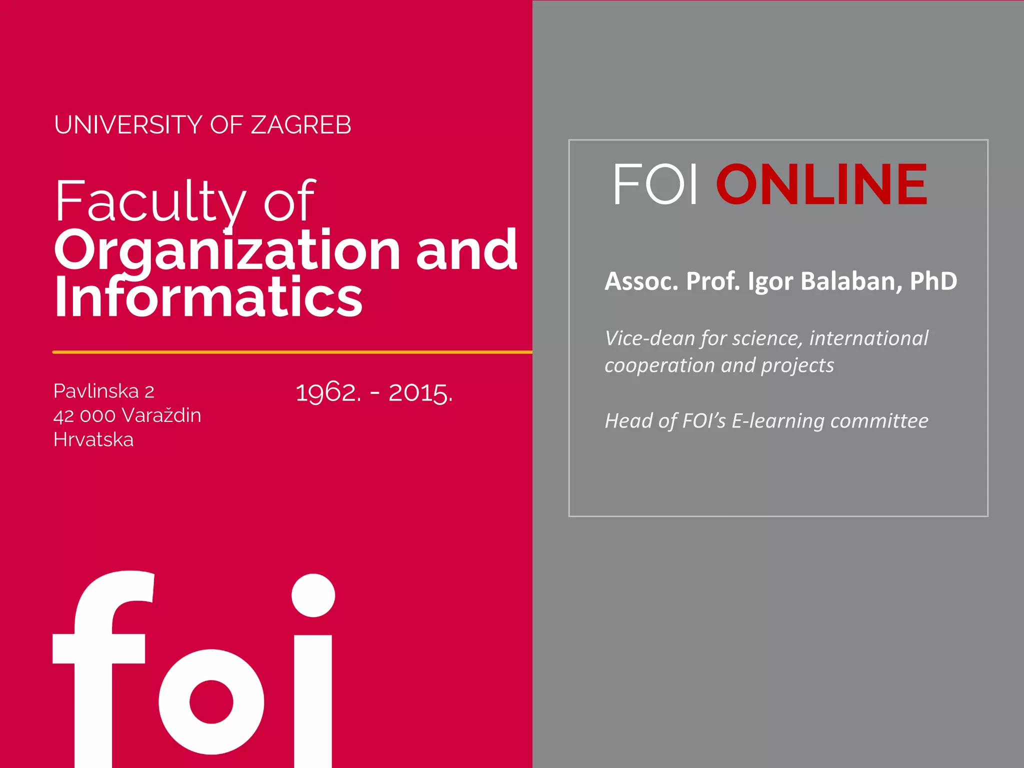 The document outlines the online educational practices and organizational strategies of the Faculty of Organization and Informatics at the University of Zagreb, highlighting three models of instruction: in-class, hybrid, and fully online. It mentions various support systems for teachers and students, including technical assistance, learning management systems, and workshops aimed at enhancing teaching skills. Additionally, it discusses the evaluation of courses and the implementation of blended learning programs to improve overall educational quality.
