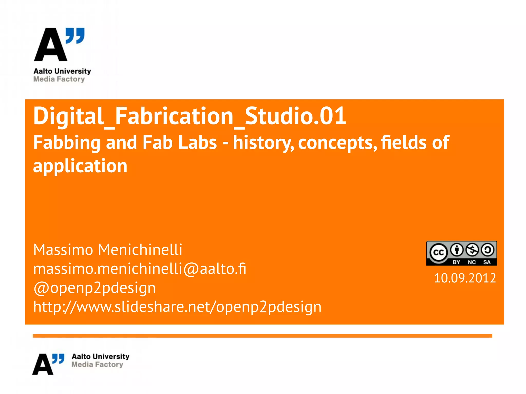 Digital Fabrication Studio.01 discusses the history and concepts of digital fabrication (fabbing) and Fab Labs. It provides examples of how digital fabrication is used from craft projects to industrial manufacturing. It outlines the key aspects of Fab Labs as spaces that democratize digital fabrication technologies and allow for collaborative exploration and project development. Applications of digital fabrication discussed include DIY and hacker projects, generative design, mass customization, customized prosthetics, shorter supply chains, and use in different media like photography, video, and books.