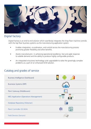 Zensar's Digital Factory provides a comprehensive solution that integrates manufacturing operations from the shop floor to business systems, enhancing visibility and control while promoting flexibility and operational excellence. The solution includes services such as remote monitoring, predictive maintenance, and industry-specific customization, enabling manufacturers to respond swiftly to volatile demands. With a focus on security and data optimization, Zensar supports a diverse range of industries through its technology-agnostic approach and extensive consulting expertise.
