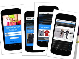 Our Digital Fashion Assistant app will help users select outfits based on events and weather, create and organize their wardrobe, and receive style and clothing suggestions. Phase 1 will focus on the basic outfit selection and wardrobe organization features. We will launch for free with optional annual memberships or pay-as-you-go options to unlock premium features. Our marketing strategy will involve social media, a dedicated website, TV and flash ads, and potentially a celebrity endorsement to gain users and compete in the growing fashion app market.