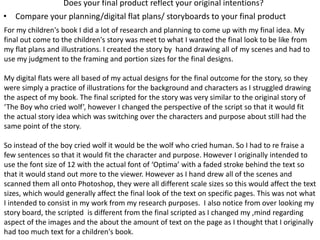 - The creator did extensive planning and research which informed their final product. The story and illustrations generally matched the initial plans.