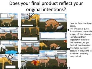 - The author created storyboards early in the process using stock images to plan page layouts and ensure their final product reflected original intentions.