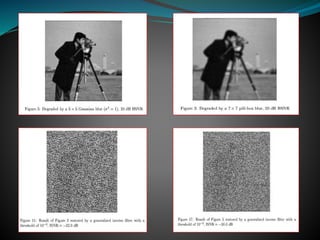 This document summarizes digital image processing techniques including algebraic approaches to image restoration and inverse filtering. It discusses: