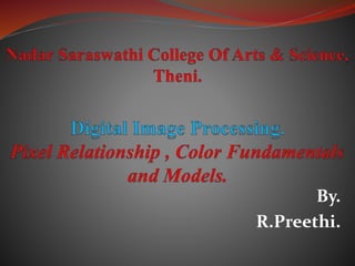 1. There are different relationships between pixels including neighborhood, adjacency, connectivity, and paths.