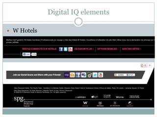 The document discusses and compares the digital IQ elements of several hotel brands: