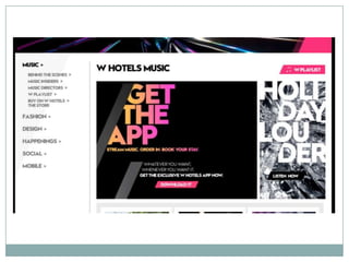 1) W Hotels ranks first with an interactive website, mobile app, social media presence, and emphasis on music, art, and events.