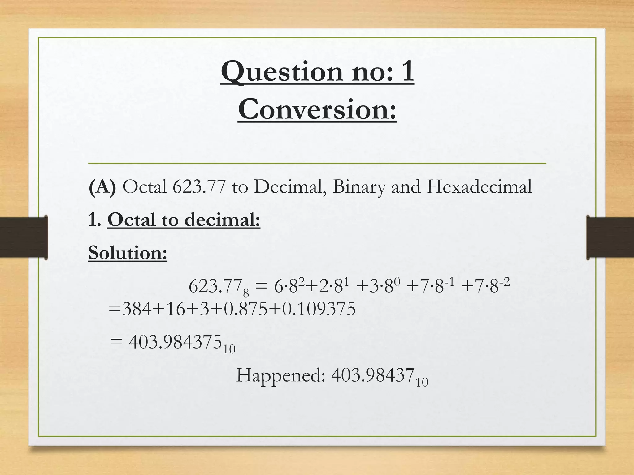 The document contains a comprehensive analysis of number system conversions (octal, hexadecimal, and binary) including step-by-step calculations. It explains various digital logic components like OR and NAND gates, encoders, and decoders with their respective truth tables and functional definitions. Additionally, it discusses the utility of logic probes in troubleshooting digital circuits.