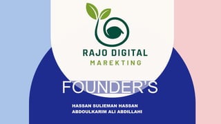 Rajo Digital Marketing is a comprehensive agency focused on enhancing businesses' online presence through services like SEO, PPC, and social media marketing. The document outlines the challenges of traditional marketing, presents digital marketing as a solution, and identifies target markets and competitive advantages. It also discusses revenue models, cost structures, and marketing strategies to ensure effective operations and client engagement.