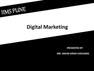 Digital marketing is the promotion of products, services, or brands through electronic devices. It involves the use of tools like blogs, social media, search engine optimization (SEO), search engine advertising (SEM), big data, display ads, content marketing, video, mobile apps, and customer relationship management (CRM) to target potential customers. The key areas of digital marketing are SEO, display advertising, e-CRM, content marketing, and social media communication. Digital marketing allows for cheap, global reach and easy analysis of marketing efforts. It is a creative, interactive way to promote brands without physical limitations.