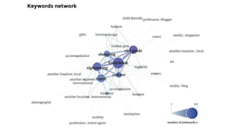 The document discusses how geosocial media platforms like Pinterest, Twitter, Meetup, and Geocaching shape perceptions of urban spaces in Amsterdam, emphasizing the differentiation between parochial and public domains. It uses data from various platforms to analyze the representation of Amsterdam and identifies trends in user interaction, such as locals versus tourists. The findings suggest that while some platforms highlight niche local experiences, others reveal broader public spaces, paving the way for further research on urban social dynamics.