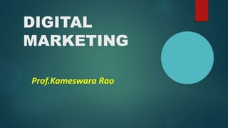This document provides an overview of digital marketing. It defines digital marketing as marketing products or services using digital technologies like the internet and mobile phones. The benefits of digital marketing include the ability to reach the right audience, engage and motivate them to take action in order to maximize return on investment. Digital marketing consists of tools like SEO (search engine optimization), PPC (pay-per-click advertising), SMM (social media marketing), and content writing. SEO involves optimizing websites to rank higher in organic search results. PPC involves paying to display ads and only being charged when users click on them. SMM uses social media as a marketing channel to increase brand exposure and traffic. Content writing provides relevant content for target audiences