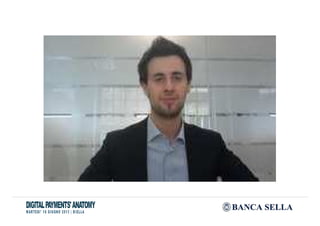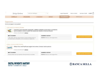 Il documento tratta dei metodi e della sicurezza dei pagamenti online nel contesto dell'ecommerce, evidenziando l'importanza di permettere ai clienti di scegliere come acquistare. Descrive il processo di transazione online, dall'accesso del titolare di carta al sito dell'esercente fino all'autorizzazione da parte della banca. Viene inoltre sottolineata l'evoluzione del digitale e la necessità di rimanere aggiornati sulle migliori pratiche.