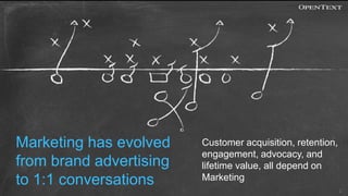 The document discusses how marketing and IT have evolved to focus on customer experience across channels. It emphasizes that content is the currency that drives conversations in the new digital economy. The document provides guidance that companies should inspire conversation, respond quickly to influence their brand, and cultivate online communities.