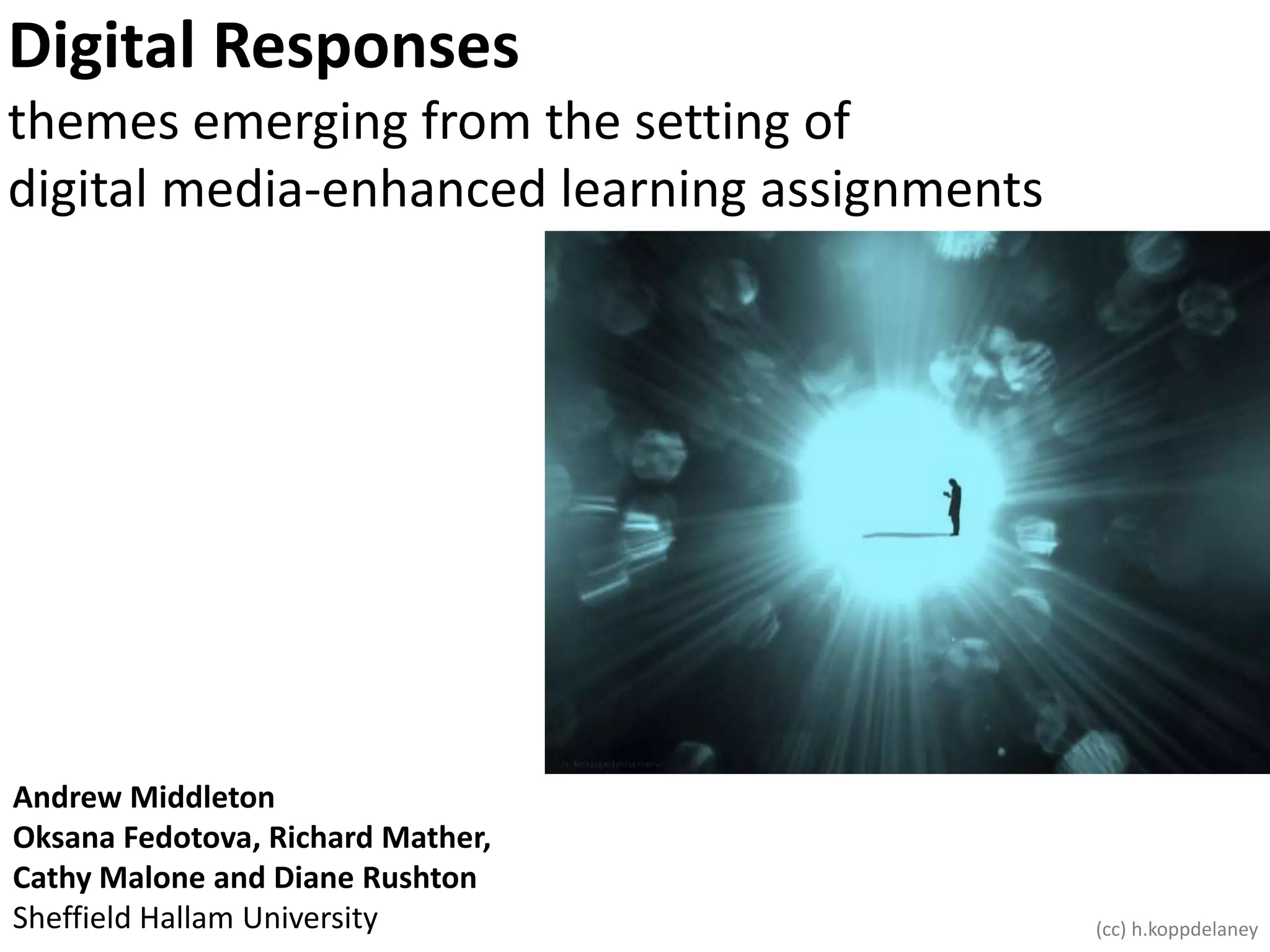 The document discusses the integration of digital media in learning environments through various assignments, highlighting case studies on digital posters, machinima, digital storytelling, and digital commentary. It emphasizes the benefits of digital media assignments in developing academic literacy, fostering creativity, and enhancing student engagement while addressing challenges related to student readiness and assessment design. Key findings include the importance of clear expectations, innovative practices, and the communal construction of knowledge among students and educators.