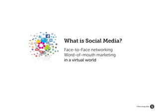 The document discusses the significance of social media in modern marketing, highlighting the shift from traditional outbound techniques to inbound marketing strategies. It emphasizes the importance of building relationships with customers and crafting an authentic brand story in the digital age. Additionally, it touches on the necessity of having a social media policy and guidelines for responding to customer interactions online.