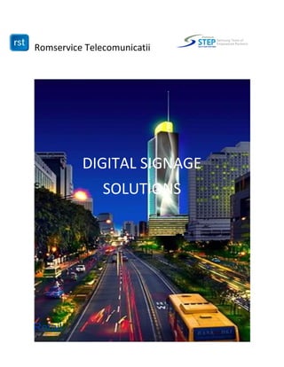Documentul descrie soluțiile de digital signage oferite de Samsung pentru diverse industrii, inclusiv retail, hoteluri și corporații, care îmbunătățesc experiența clientului prin afisaje interactive și conținut dinamic. Aceste soluții includ display-uri de înaltă calitate, software de gestionare și opțiuni de personalizare, permițând o gestionare eficientă a conținutului în timp real. Prin tehnologiile integrate, companiile pot promova branduri, îmbunătăți colaborarea și atrage noi clienți.