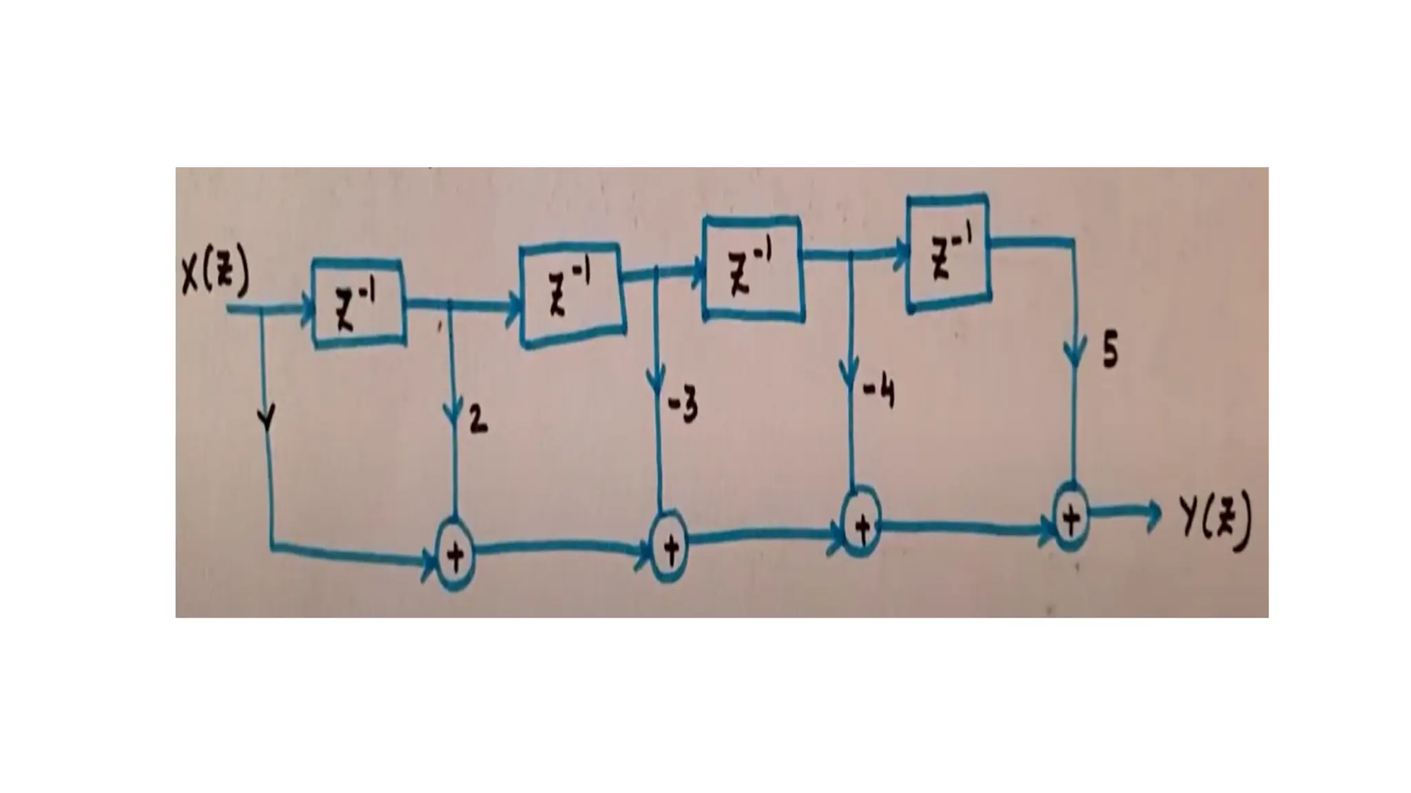 Y(z) = X(z) + 2X(z) - 3X(z) - 4X(z) + 5X(z)