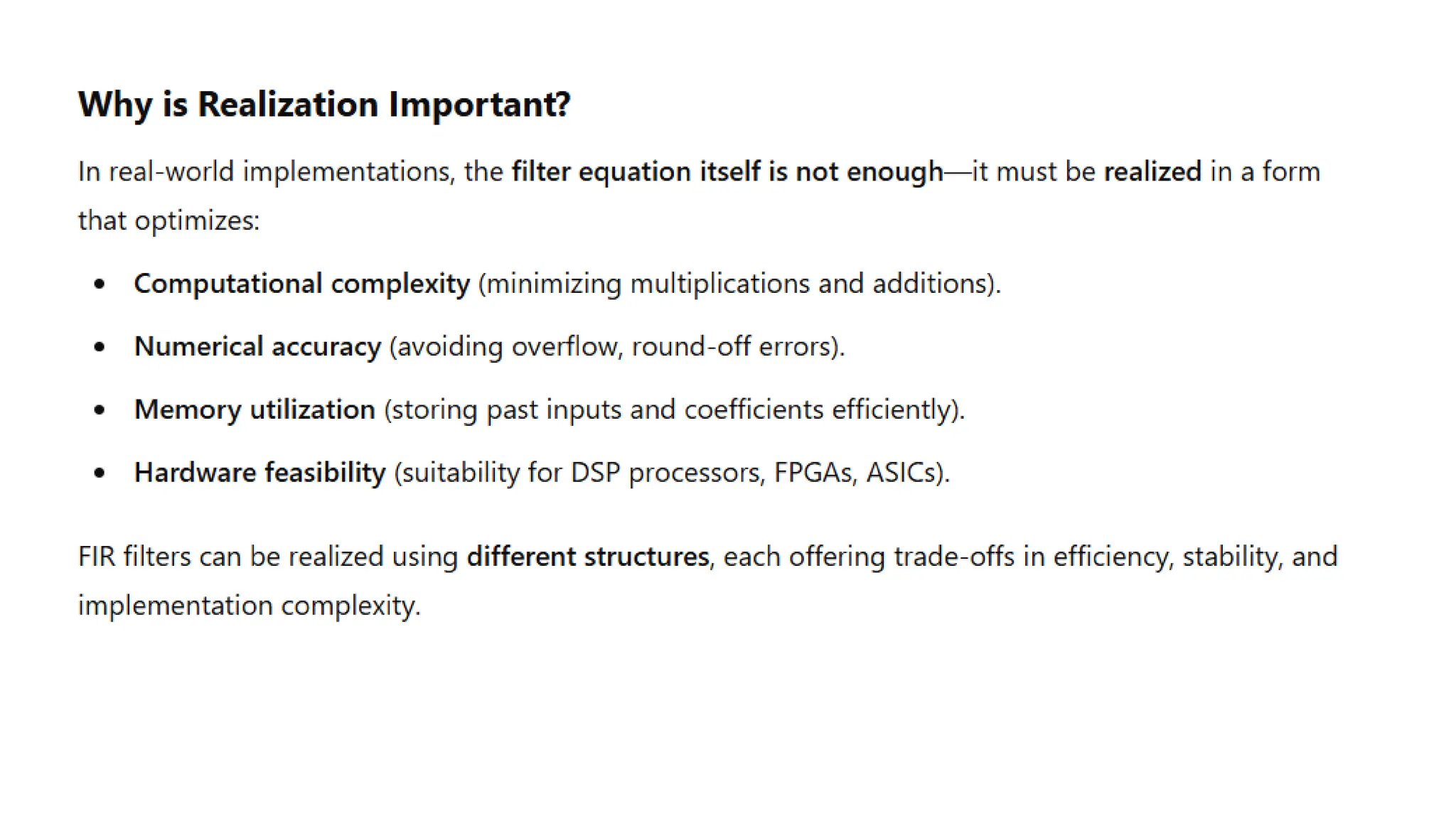 REALIZATION OF FIR FILTERS