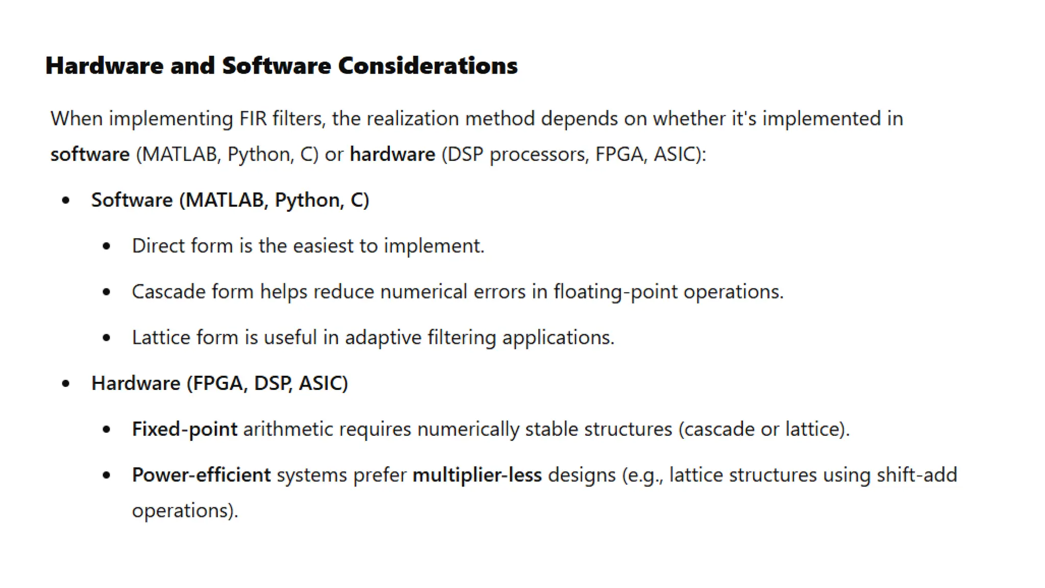 hardware (e.g., FPGA, DSP).
