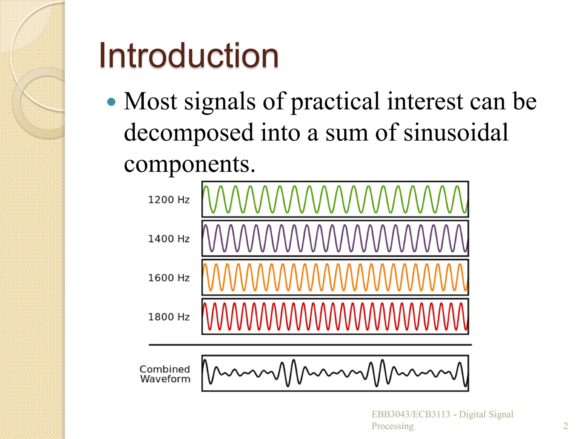 This document provides an overview of Fourier Analysis for Discrete-Time Linear Time-Invariant (LTI) systems. It explains how signals can be analyzed in the frequency domain using the Discrete-Time Fourier Transform (DTFT), focusing on concepts like magnitude and phase spectra. Key properties such as linearity, time-shifting, time-reversal, modulation, convolution, and Parseval’s theorem are covered. The document details the relationship between time-domain convolution and frequency-domain multiplication, introduces frequency response H(e^jω), and explains how to solve linear constant-coefficient difference equations (LCCDE) using DTFT. It concludes with the use of Inverse DTFT and common DTFT pairs for signal reconstruction and system analysis.