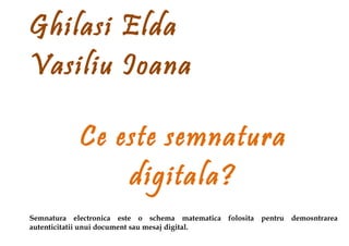 Semnătura digitală este o metodă matematică care confirmă autenticitatea documentelor digitale, asigurând că acestea nu au fost modificate. Aceasta oferă imposibilitatea de repudiere pentru emitent, responsabilizându-l pentru conținutul documentului semnat. Semnăturile digitale sunt mai sigure decât cele olografe și pot fi folosite în diverse aplicații, precum tranzacții financiare și distribuția de software.