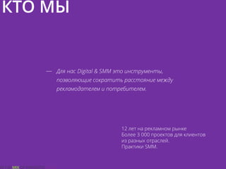 Документ описывает стратегию цифрового и SMM-маркетинга, подчеркивая важность взаимодействия между рекламодателем и потребителем. Основное внимание уделяется различным инструментам и методам, таким как таргетированная реклама, брендированный контент, и email-маркетинг, которые помогают повысить узнаваемость бренда и улучшить клиентский сервис. Также обсуждается процесс разработки эффективной коммуникационной стратегии и мониторинга эффективности рекламных кампаний.