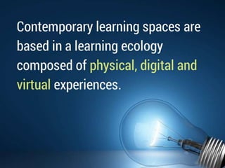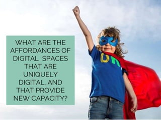 The document discusses the impact of digital media on learning, emphasizing that digitally literate youth recognize two channels for education: institutional and peer-driven. Richard Halverson highlights the importance of personalizing learning through digital platforms, while Mimi Ito points out the need for academic interventions in student engagement. The text implies that students participate in both friendship-driven and interest-based activities within various educational spaces.